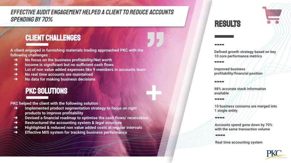 A client engaged in furnishing materials trading approached PKC with the following challenges: