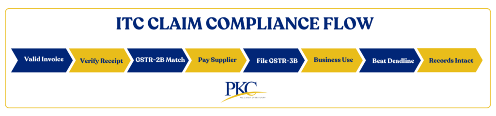 Here’s a step-by-step breakdown of the critical actions for claiming Input Tax Credit (ITC) under GST: