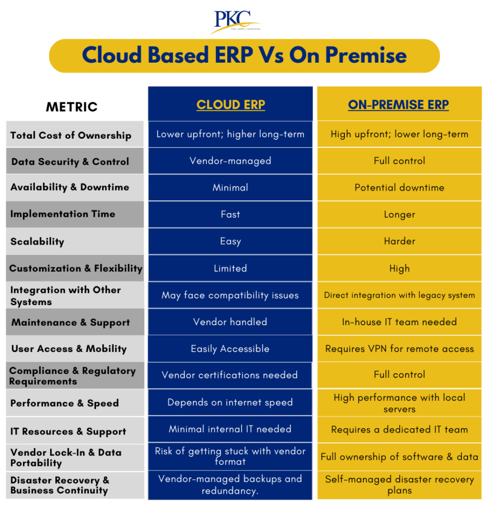 When evaluating Cloud Based ERP vs on-premise ERP, businesses must consider several key metrics to determine what will work best for them.
