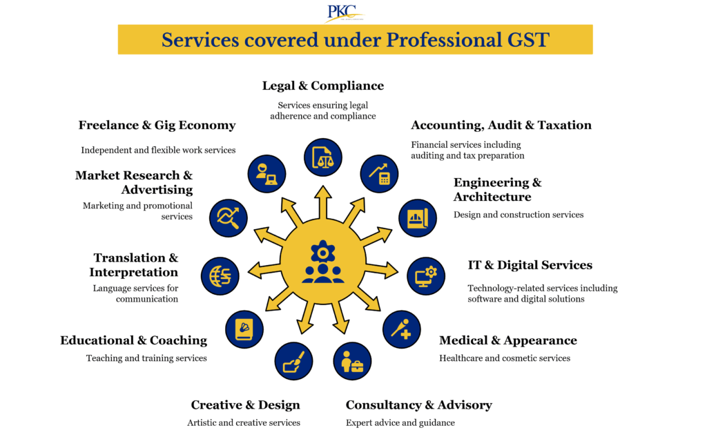 Professional GST applies to a wide range of fee-based, intellectual, or specialized services, including: