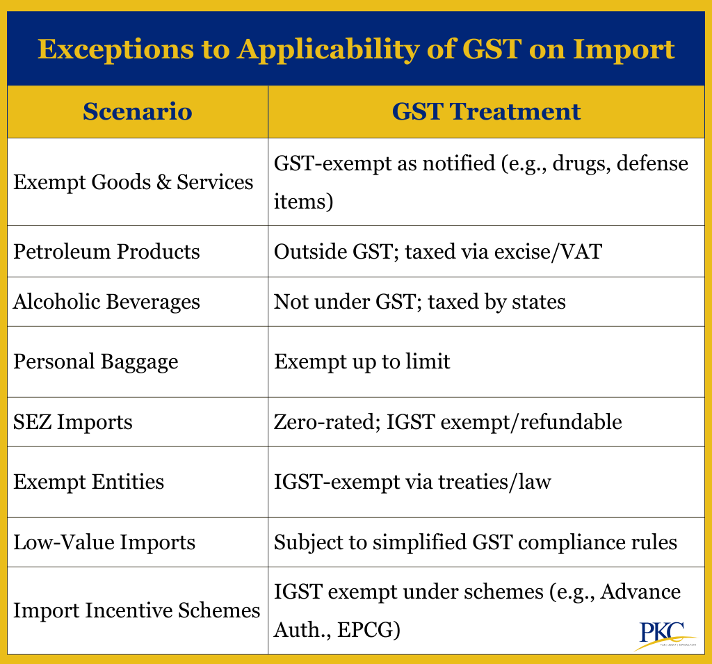 Although the general GST framework requires IGST on all imports, there are important exceptions and special rules: