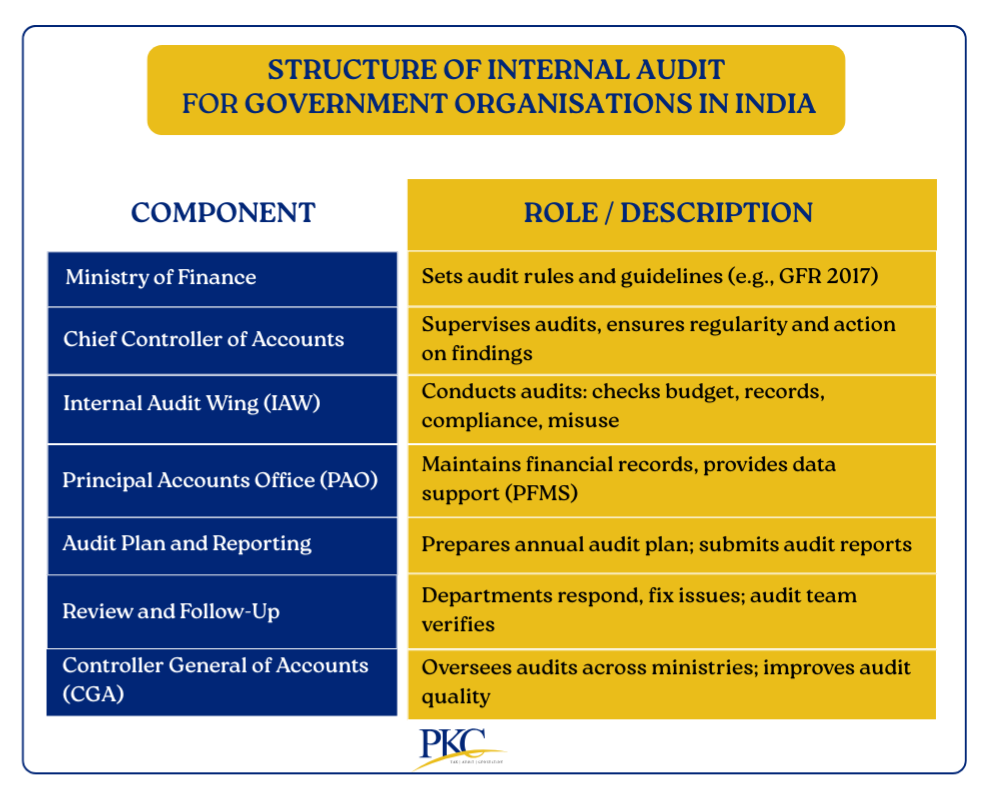This structure helps make sure that internal audits are done regularly, correctly, and are useful for improving how government departments work.