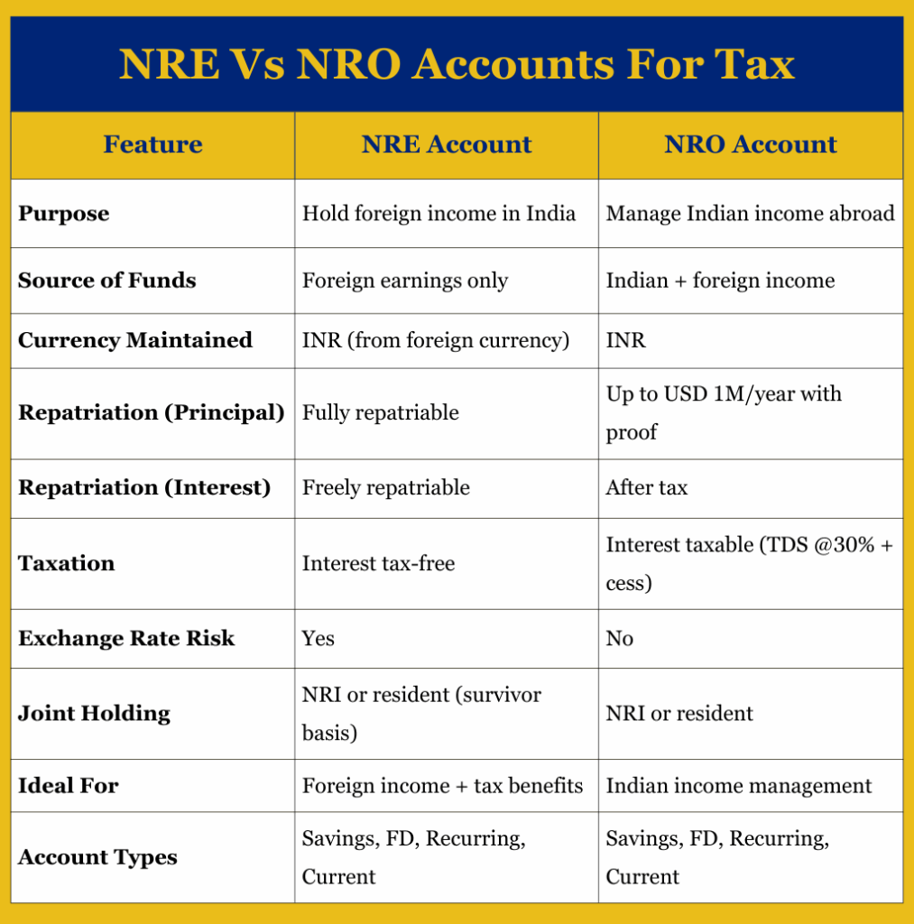 The difference between NRE and NRO accounts for tax is a major deciding factor for NRIs choosing between the two.