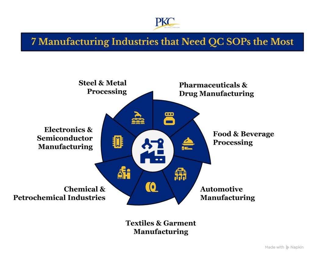 Mostly all kinds of manufacturing industries benefit from implementing QC SOPs.