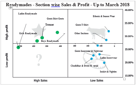 Approach  The Founder to closely focus on these product categories to ensure sales or profits do not fall. Ensure adequate variety and innovation in these products to continue the leadership position.