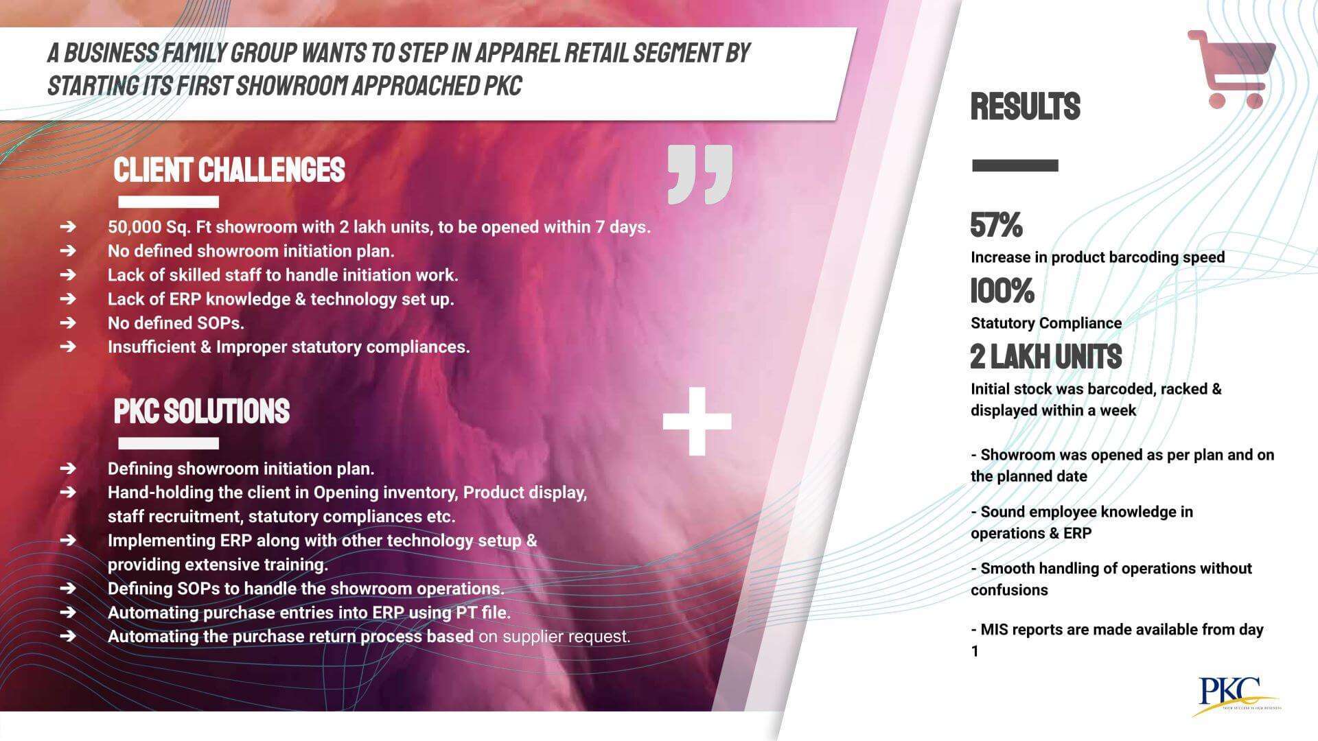- Hand-holding the client in Opening inventory, Product display, staff recruitment, statutory compliances etc.,