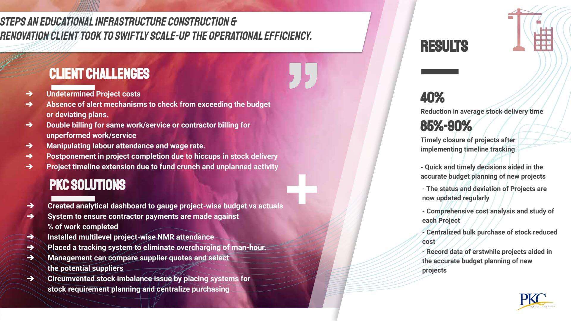 - Quick and timely decisions aided in the accurate budget planning of new projects.