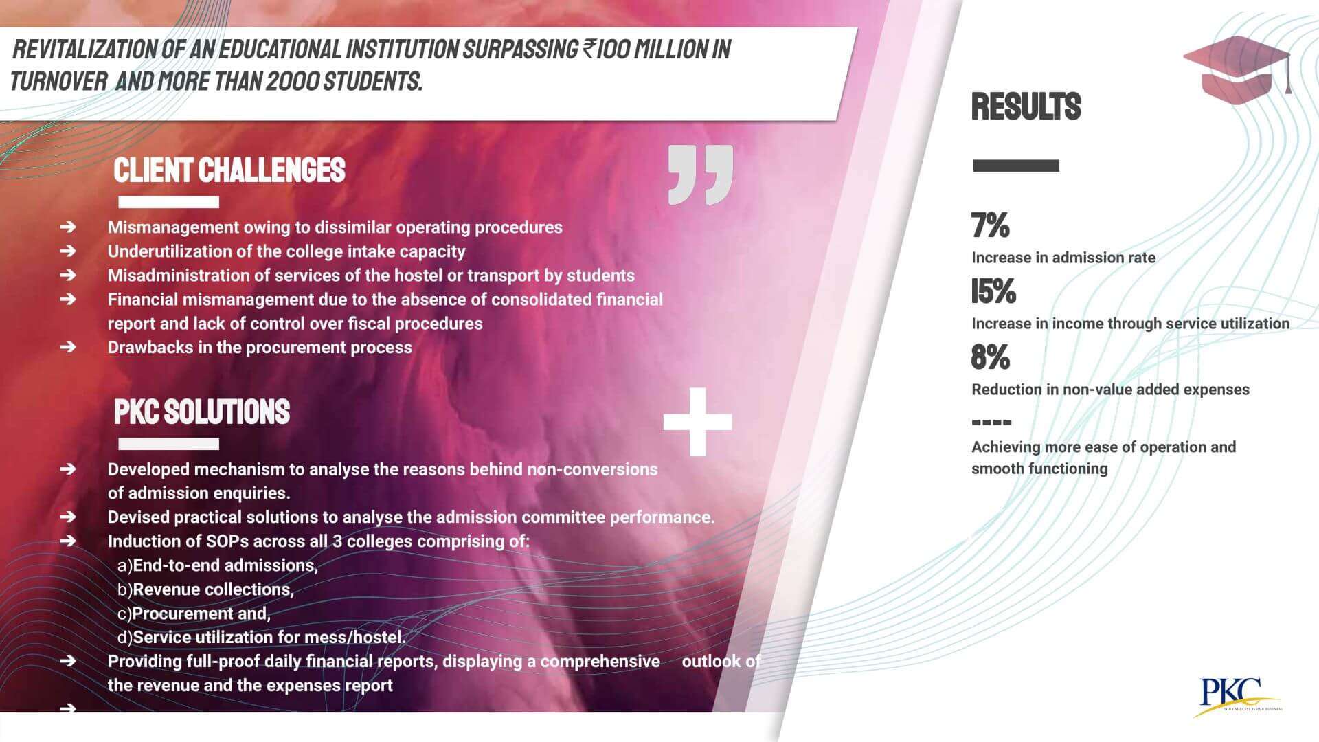 - Developed mechanism to analyse the reasons behind non-conversions of admission enquiries.