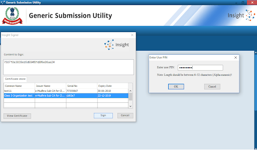 - DSC of Class II or III, issued by CCA approved certifying agencies in India, should be used
