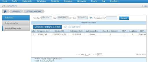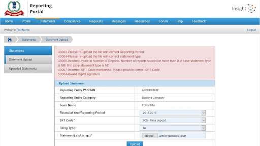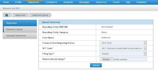 Statement Upload on Reporting Portal