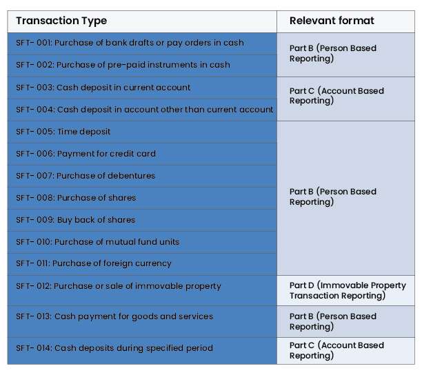 Statement of Financial Transactions (SFT) Relevant Format: