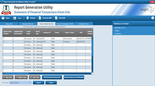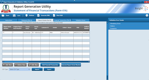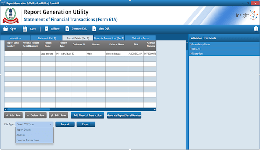 - For multiple transactions or addresses against a particular PAN or account, use CSV type “Address” and “Financial transaction”.